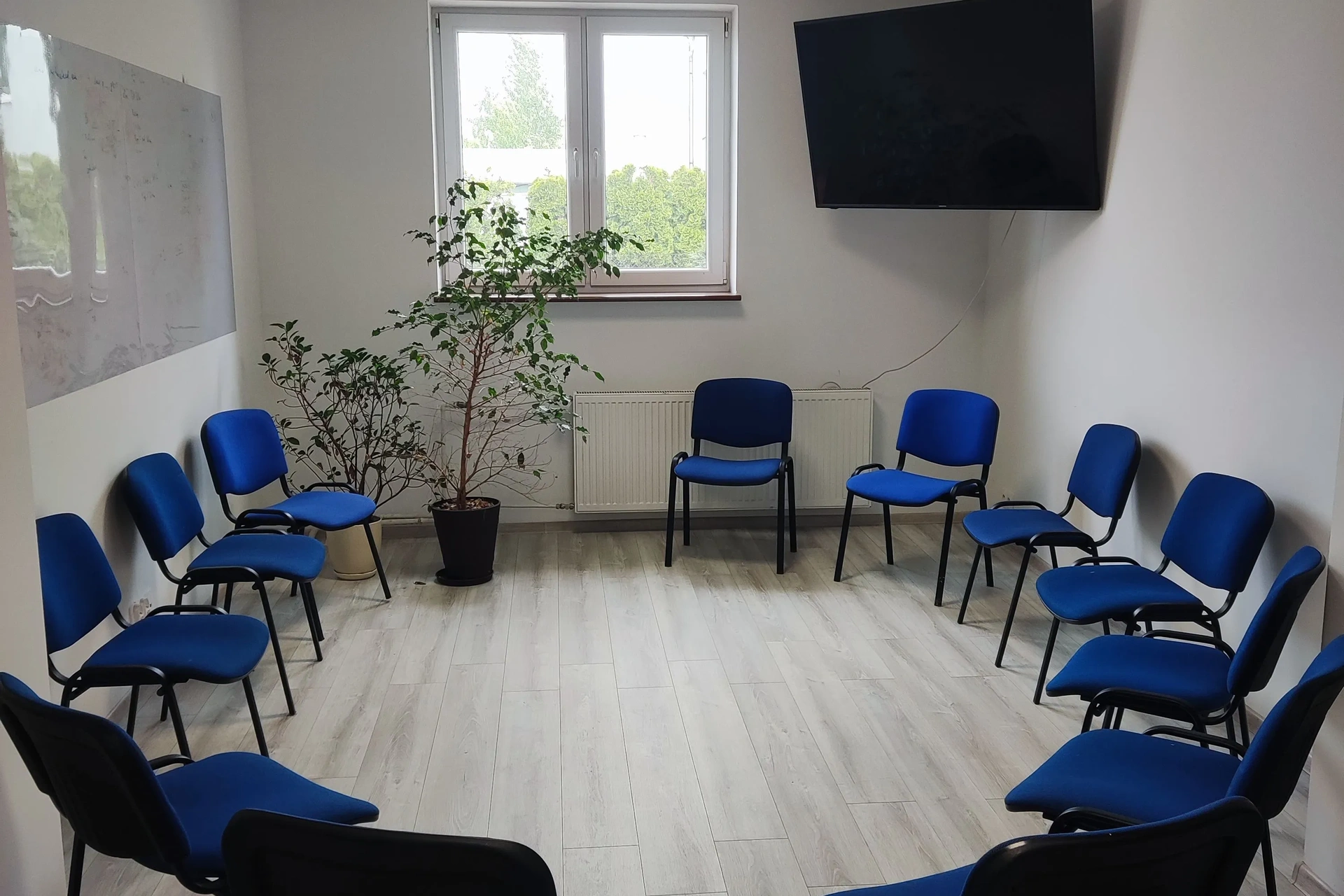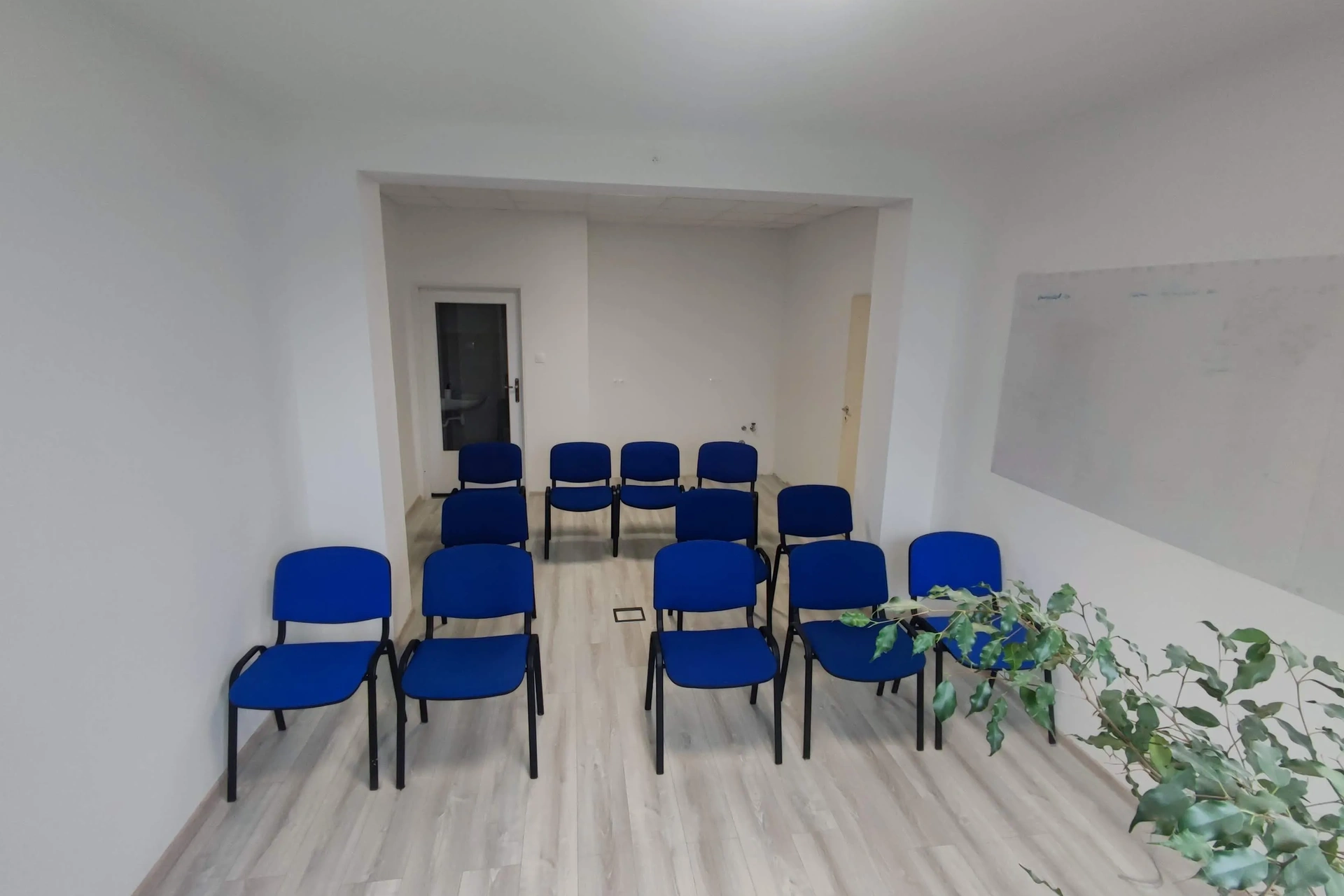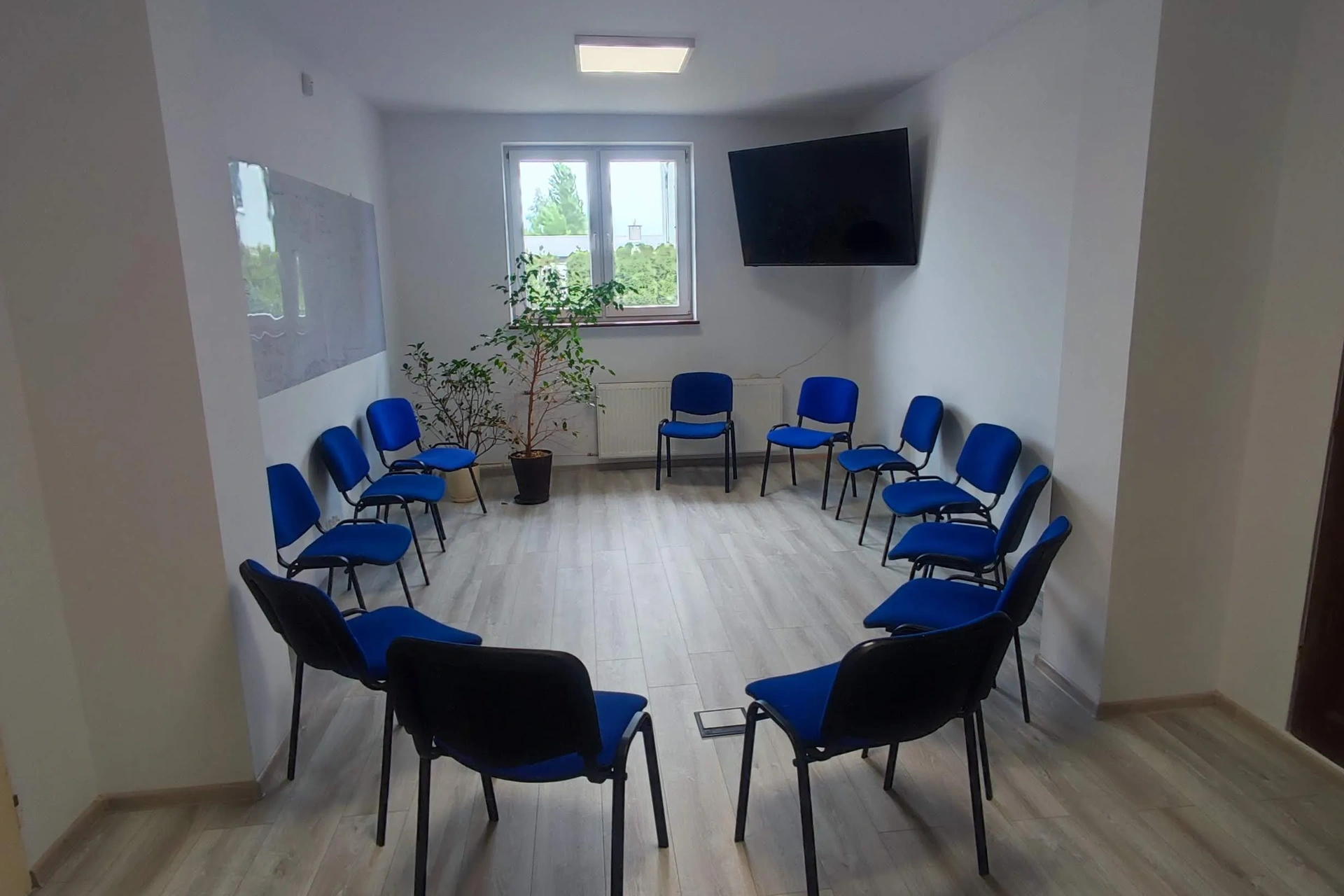 Salka szkoleniowo-konferencyjna Szkoleniowa przestrzeń na godziny Obiekt dysponuje niewielką (10-12 osób) salką konferencyjną wyposażoną z monitor 65". Salka może pełnić również role sali szkoleniowej. Masz pytania? Napisz lub Zadzwoń